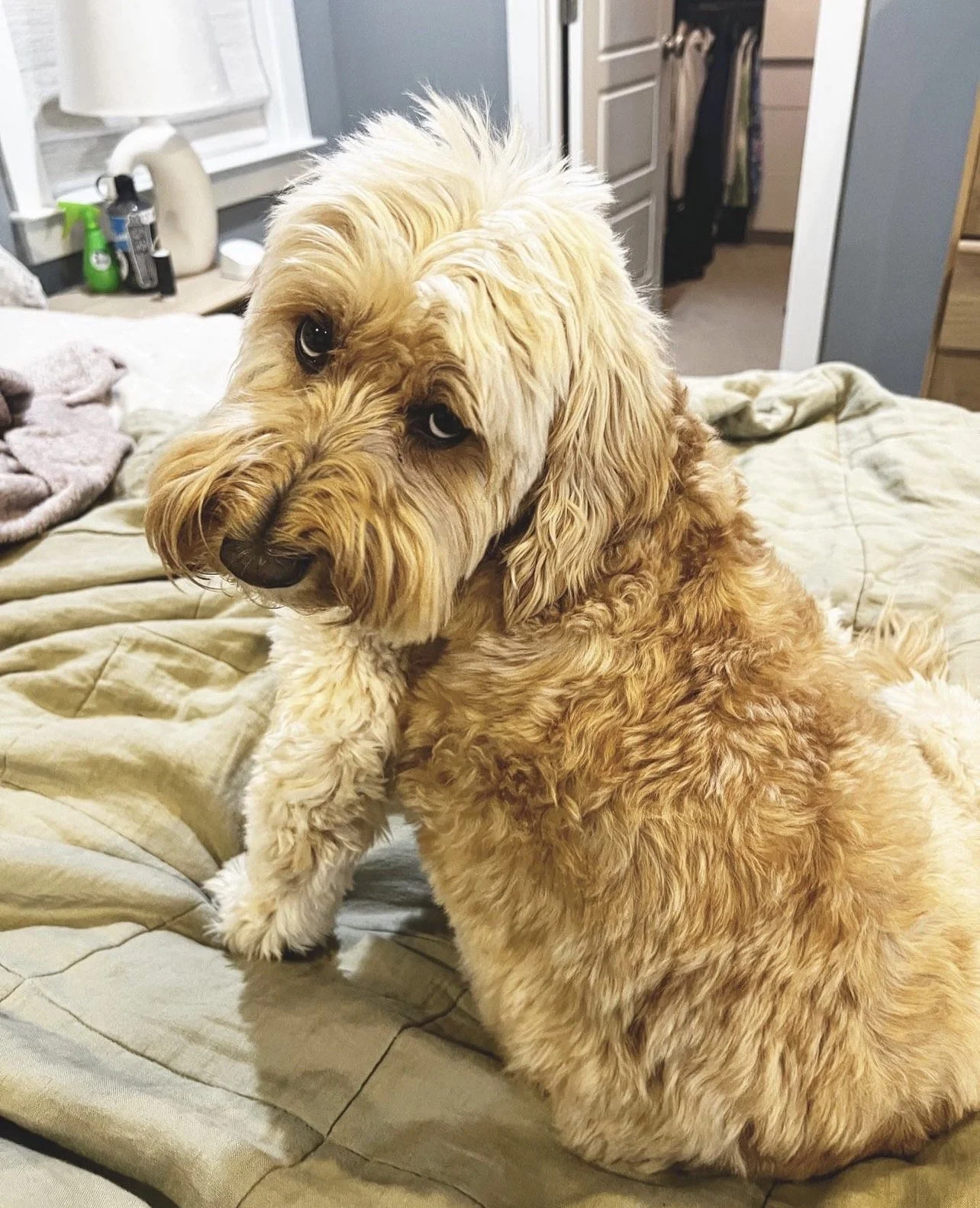 This is my boy doodle bug, Gibbs! He is the most adorable, cuddly, precious boy! I could not be more in love with him. He was house broken by 4 months, he is smart and has learned quickly. I had a female lab before him, and I think they have been comparably stubbornābut ultimately know that Iām the boss. He sleeps with me every night and is an excellent watch dog. So friendly, but knows when to be watchful. He has never been aggressiveābut can play a little too roughly with the cats. But heās only 18 months old. It will get better! Especially when I get him a furry doodle sibling hopefully in the not too distant future ā¤ļøš¶